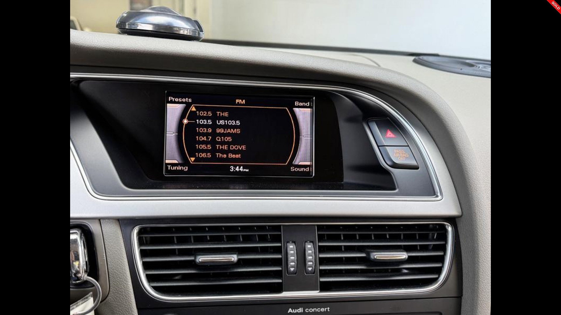 | Accessories: | 12-volt aux pwr outlet in front center console, 3-spoke leather-wrapped multi-function tilt/telescopic sport steering wheel w/audio controls, 3-zone automatic climate control, AM/FM stereo w/CD/MP3 player -inc: aux input jack, SD card slot, speed-dependent volume control, Anti-theft alarm system w/engine immobilizer, Audi music interface w/iPod cable, Audi sound system -inc: (10) speakers, 180-watt amplifier, Bluetooth hands-free phone interface, Cruise Control, Driver info system -inc: 5-function trip computer w/fuel range/average fuel mileage/current fuel mileage/average speed/elapsed time, outside temp display, digital speed display, radio/phone/nav display, active Auto Check system w/speed warning device, pictogram display for open door & decklid, Driver/passenger sun visors w/illuminated vanity mirrors, Electric rear window defogger -inc: auto timed shut off, Fog Lamps, Front/rear floor mats, HomeLink universal garage door opener, Interior lights in overhead console w/front map lights, Pwr central locking system w/selective unlock & keyless entry -inc: radio-operated key fob remote control for doors/deck lid/fuel door, Pwr windows -inc: 1-touch up/down, pinch protection, Rain sensing windshield wipers, Rear overhead LED map lights, SIRIUS satellite radio w/antenna -inc: 3-month free trial |